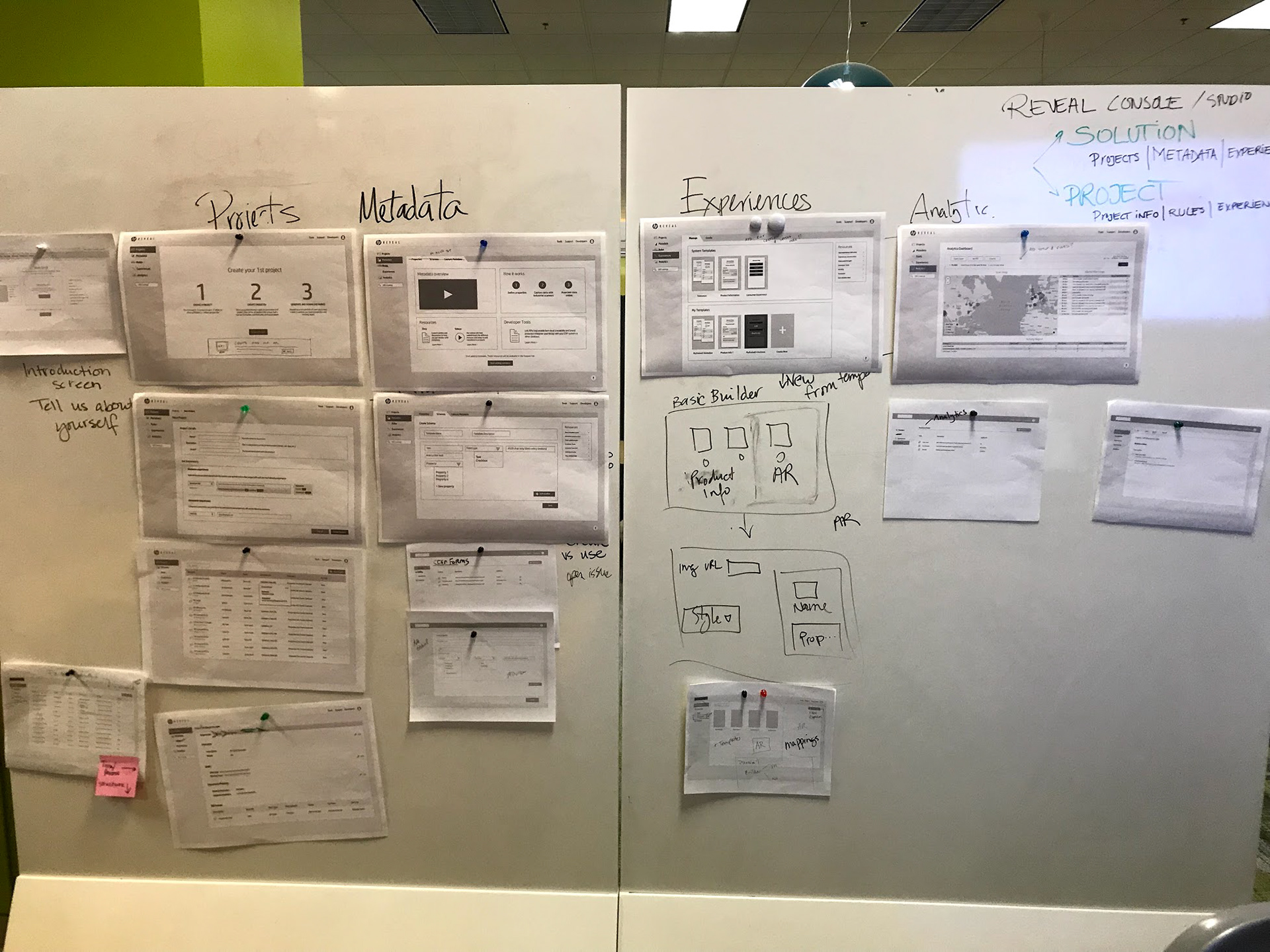 During the process we turned key sketches on the whiteboards into wireframes to iterate on each day.